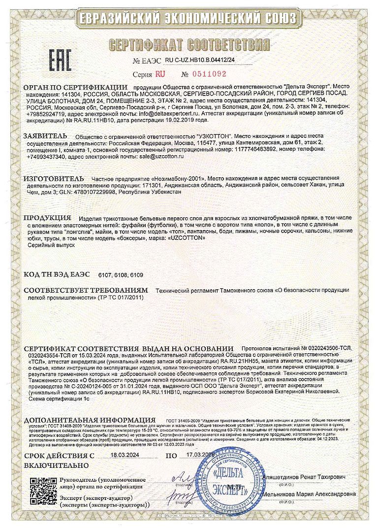 Сертификат соответствия на футболки хлопок